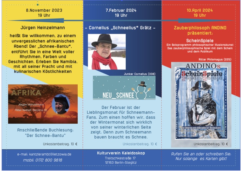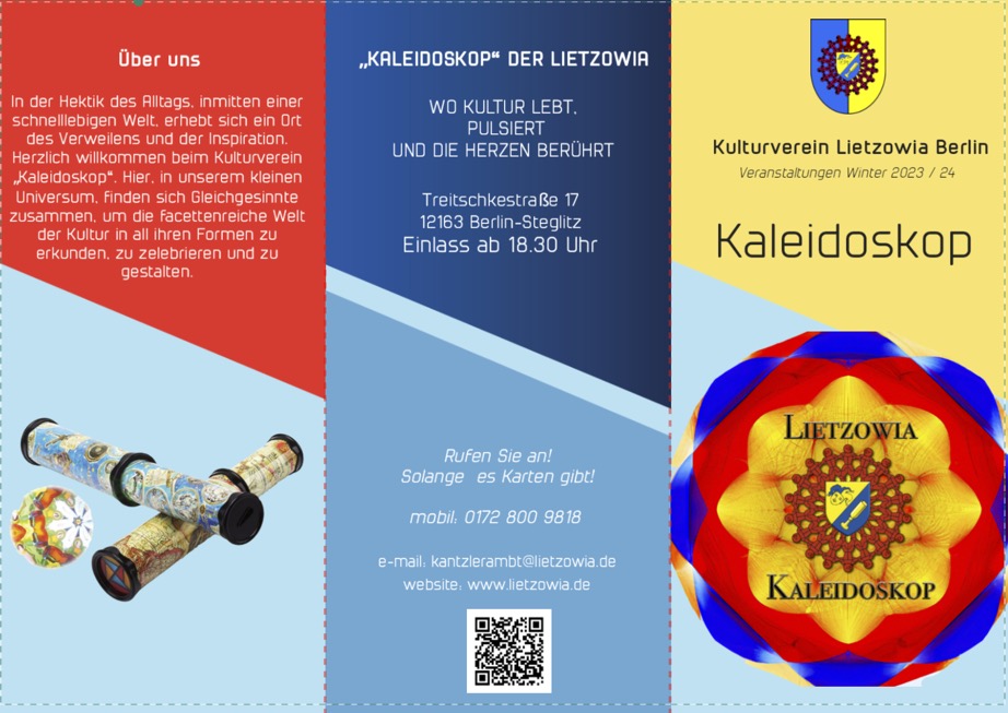Flyer Kulturverein »Kaleidoskop« der Lietzowia DIN A 4 auf DIN lang gefaltet
