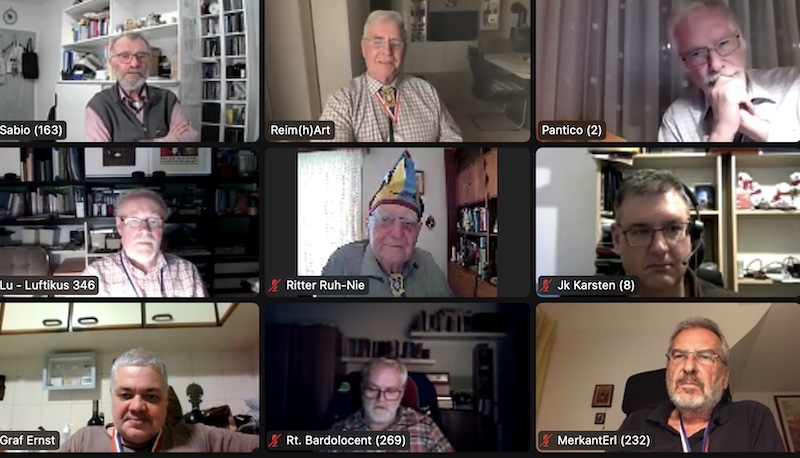 Vom ersten virtuellen “In Silico” Treffen a.U. 161.03.19 bis jetz a.U.164.9 konnte ich viele Schlaraffen Freunde am Bildschirm kennenlernen. Allen lag Schlaraffia so nahe wie mir selbst. Einige Schlaraffen, die anfangs und auch später nicht mitmachten, blieben ganz weg, weil sie solche Treffen einfach negativ bewerteten. Andere wieder hatten Schwierigkeiten mit den technischen Anforderungen und blieben deshalb weg. Ich genoss, was ich hier fand, hoffe es noch lange genießen zu können und bin allen dankbar, die das ermöglichten und auch weiterhin ermöglichen. Ich weiss aber auch, dass diese Treffen anders sind als die herrlich-schönen Sippungen, wo man sich persönlich – und nicht nur virtuell – begegnen kann. Ich hoffe, dass Schlaraffen sich in Sippungen, in Kristallinen und am Bildschirm noch jahrhundertelang begegnen und bereichern können.